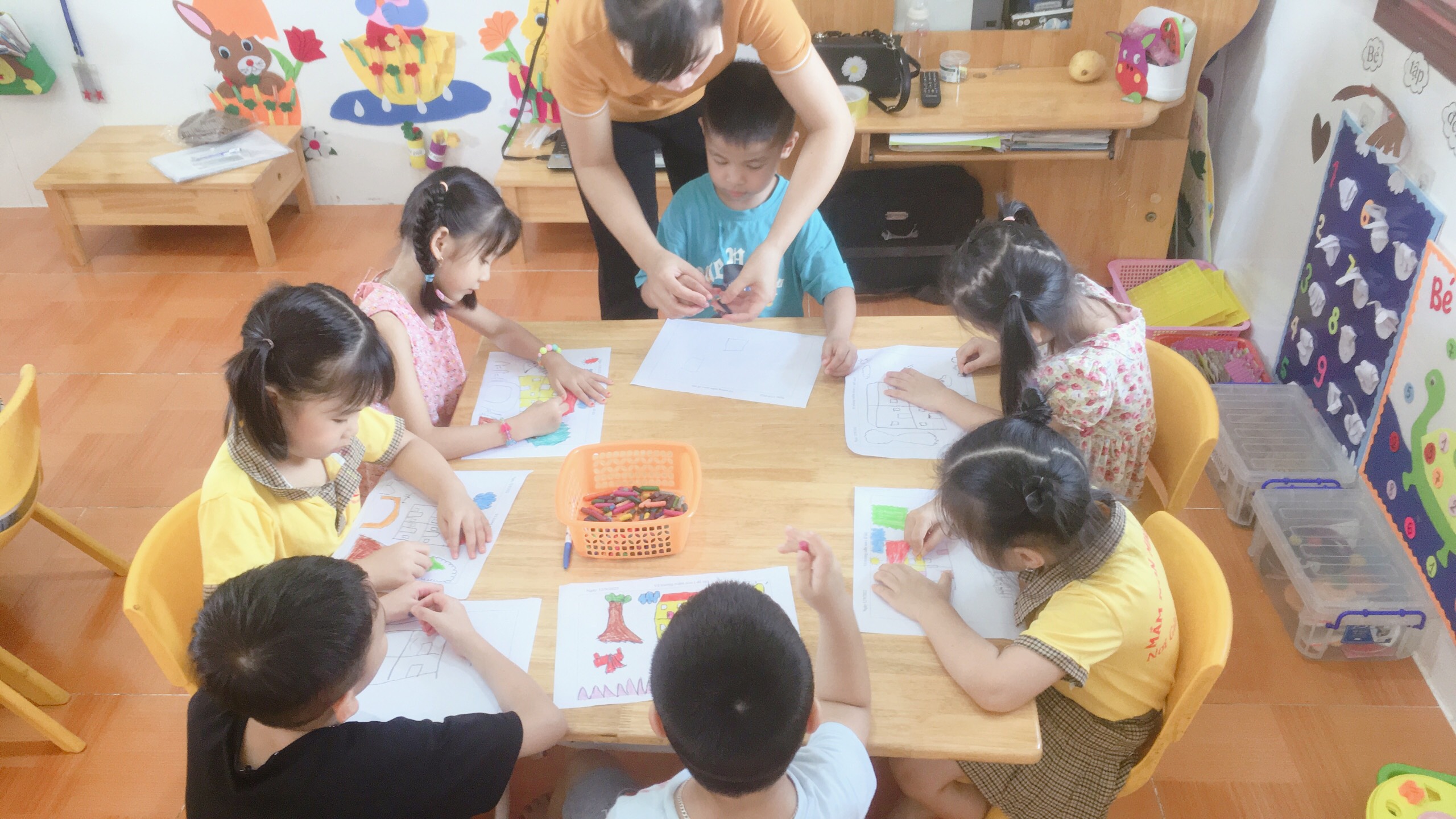 5 tuổi B với chủ đề “ Vẽ trường mầm non của bé”: