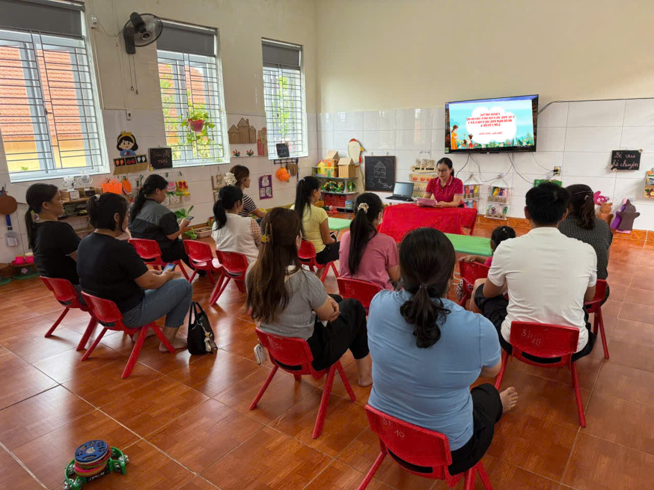 Buổi họp có sự tham dự của cô giáo chủ nhiệm lớp cùng toàn thể phụ huynh học sinh. Tại đây, cô giáo đã thông tin đến phụ huynh về: