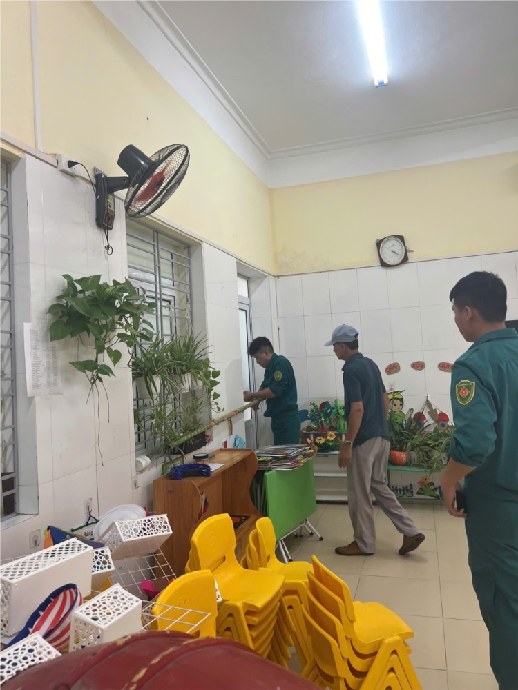 - Nhà trường đã tiến hành kiểm tra, gia cố lại mái che, cửa sổ, cửa ra vào, đảm bảo các công trình trong khuôn viên trường được bảo vệ chắc chắn trước sức gió của bão.