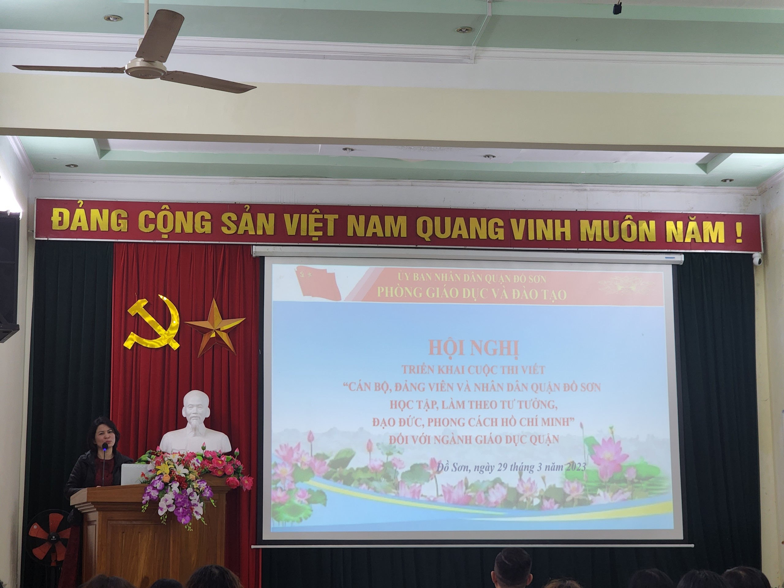 Thực hiện Kế hoạch số 109-KH/QU ngày 15/3/2023 của Quận uỷ Đồ Sơn về việc Tổ chức cuộc thi viết "Cán bộ, đảng viên và Nhân dân quận Đồ Sơn học tập, làm theo tư tưởng, đạo đức, phong cách Hồ Chí Minh". Chiều ngày 29/3/2023, Phòng Giáo dục và đào tạo quận Đồ Sơn đã tổ chức Hội nghị Triển khai cuộc thi viết "Cán bộ, đảng viên và Nhân dân quận Đồ Sơn học tập, làm theo tư tưởng, đạo đức, phong cách Hồ Chí Minh" tới toàn thể cán bộ, giáo viên, nhân viên, học sinh ngành Giáo dục quần Đồ Sơn