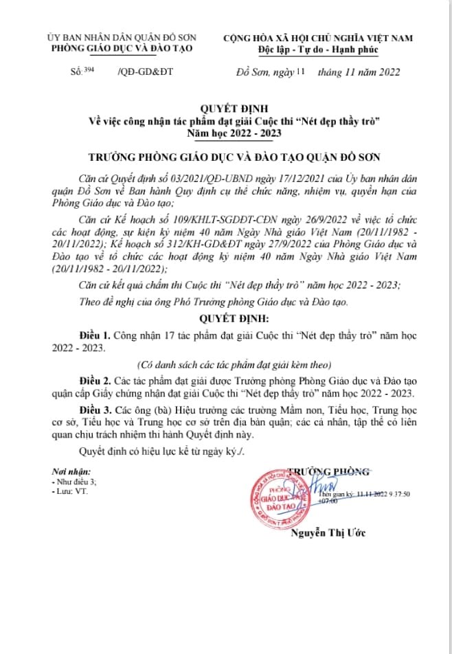 Video "MỘT NGÀY ĐỂ VUI- MỘT THỜI ĐỂ NHỚ" là tác phẩm của Trường Mầm non Minh Đức đã giành giải Nhất trong cuộc thi "Nét đẹp thầy trò" năm học 2022-2023 do Phòng Giáo dục và đào tạo quận Đồ Sơn tổ chức.